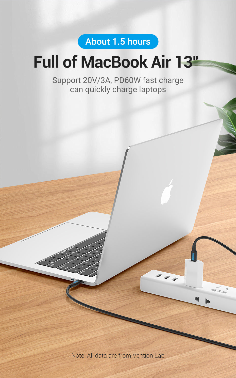 Support 20V/3A, PD60W fast charge can quickly charge laptops