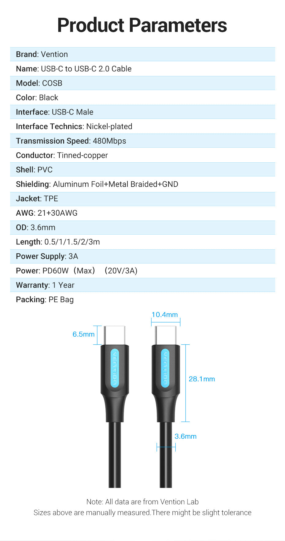 Length: 0.5/1/1.5/2/3m