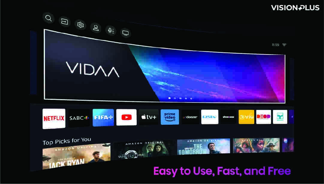 Experience amazing visual clarity with the frameless Vision Plus Smart TV. The TV offers Ultra High Definition (UHD) 4k resolution picture paired with Dolby audio clarity bringing to life levels of colors, immersion, and depth to entertainment. With its user-friendly VIDAA Operating System, enjoy limitless content ranging from sports, music, movies, kids show, news, etc. Download more apps through the Vidaa App Store.