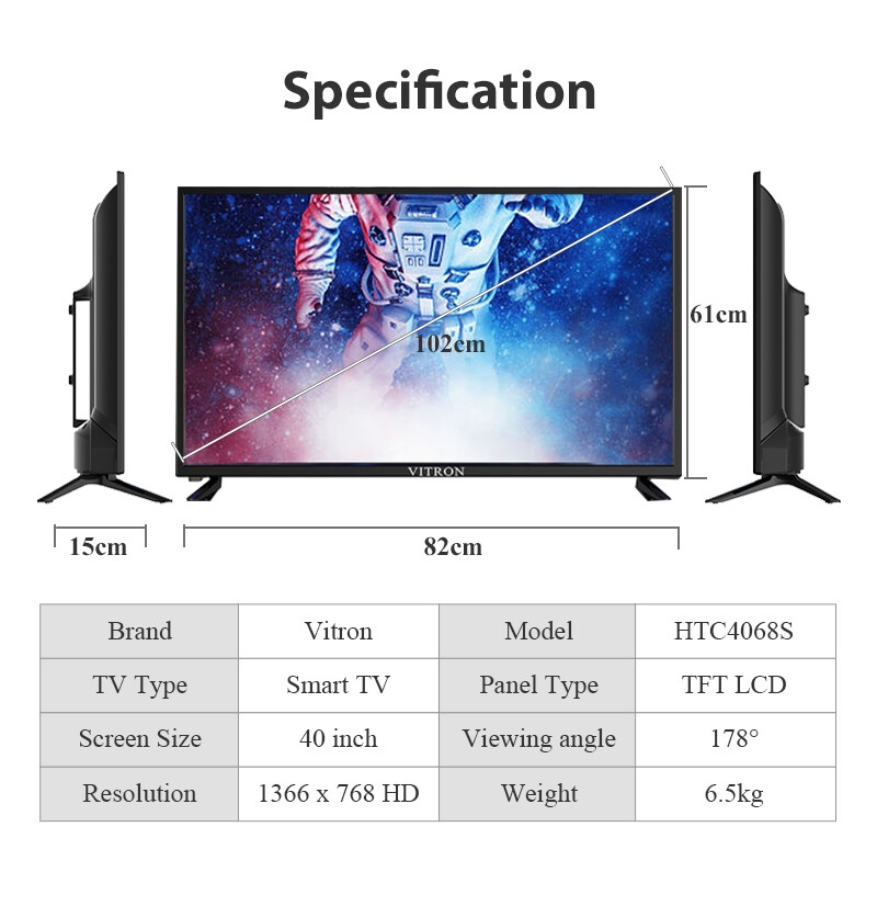 If you are looking for an all-in one TV that saves power at the same time, then VITRON 40 inch Smart android tv is your BEST choice. It has High Definition (HD) video resolution and WiFi-enabled making it amazing for movie lovers who prefer streaming through popular Apps like YouTube and Netflix. Running on android9.0, our Smart Module allows you to enjoy a customized browser and enjoy Optimized Connectivity with 2 USB ports and 3 HDMI ports. Comes with a Free Wall Mounting Bracket