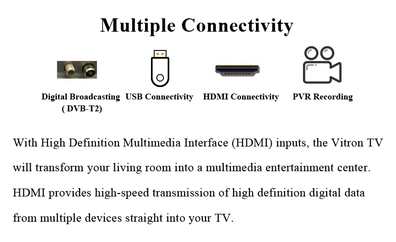 The VITRON HTC4388FS,43" Inches FRAMELESS FHD Smart Android TV 1 GB RAM,8GB ROM, Netflix, Youtube features sharply and vividly conveys the colour of the image making it true to life as you view it. Enjoy access to Youtube,Netflix, Facebook and many more apps with ease. It carries a powerful multi-surround sound effect the increases the excitement and takes your normal sports watching a pleasurable experience. TV comes with Smart features like a dedicated web browser and popular apps like YouTube and a range of movie on demands services. Playback your stored content directly on the big screen for all to enjoy via a USB device or use it to record TV programmes and even pause live TV. Place your order for this amazing product from Jumia Kenya and have it delivered to your doorstep at an amazing price.
