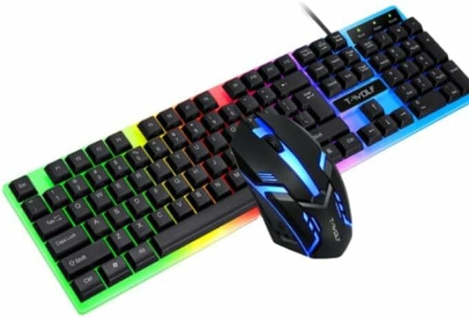 The T-Wolf TF230 Wired RGB Keyboard And Mouse Set offers a seamless typing and gaming experience with its 104 keys mechanical feel keyboard. The RGB backlighting adds a touch of style and customization to your setup. The durable design ensures long-lasting performance, while the ergonomic mouse provides precision and comfort during extended use. Enhance your productivity and gaming sessions with the T-Wolf TF230 Wired RGB Keyboard And Mouse Set.