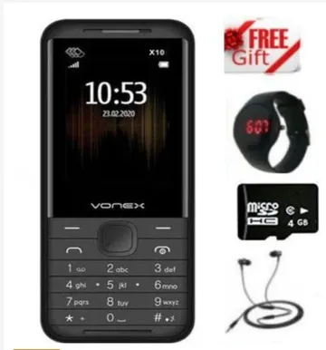 Vonex X10+ 2.4", Camera, FM Radio, Triple Sim - (2500mAH) featured phone + Torch +"FREE GIFTS. Black Black