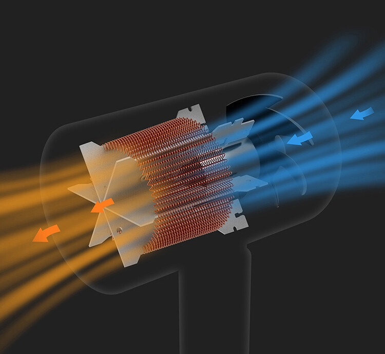 The heating wire cone-shaped tower design and can efficiently generate heat, conduct temperature uniformly, and cooperate with the air outlet protection net to blow out even hot air. Quickly blow dry hair while reducing overheating damage, and the right temperature comprehensively cares for the hair.