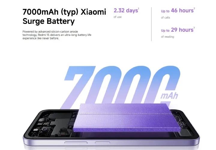 7000mAh (typ) battery33W fast charging*No power adapter included in the box. Recommended to use Xiaomi 33W power adapter.