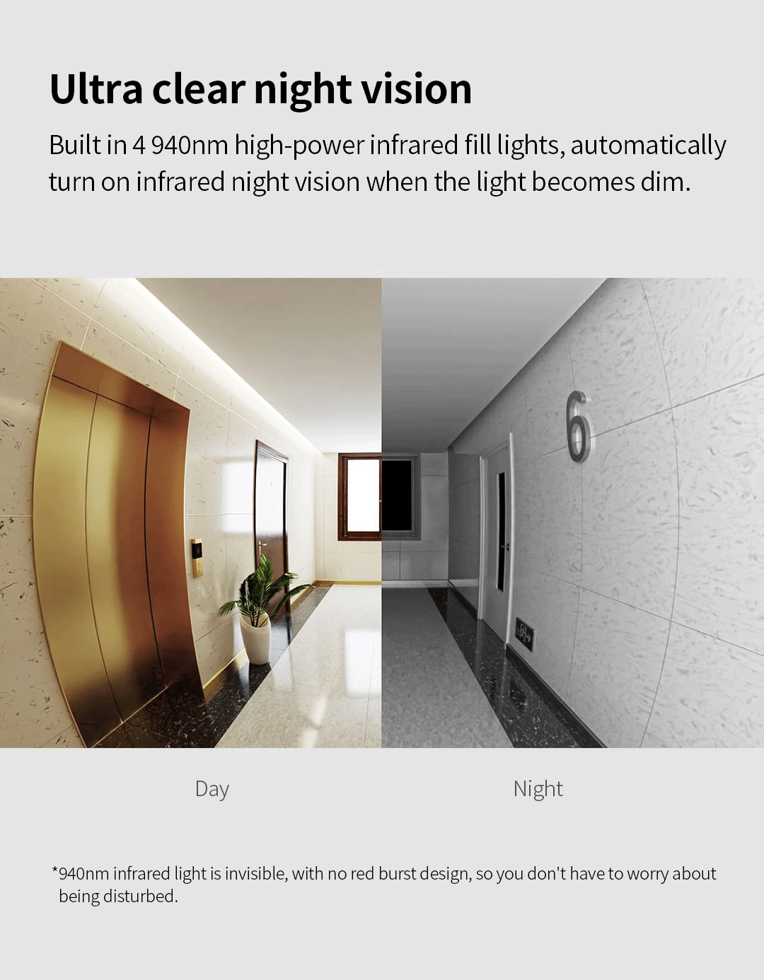 ▪ 4× 940nm infrared LEDs (no red glow) for clear night footage